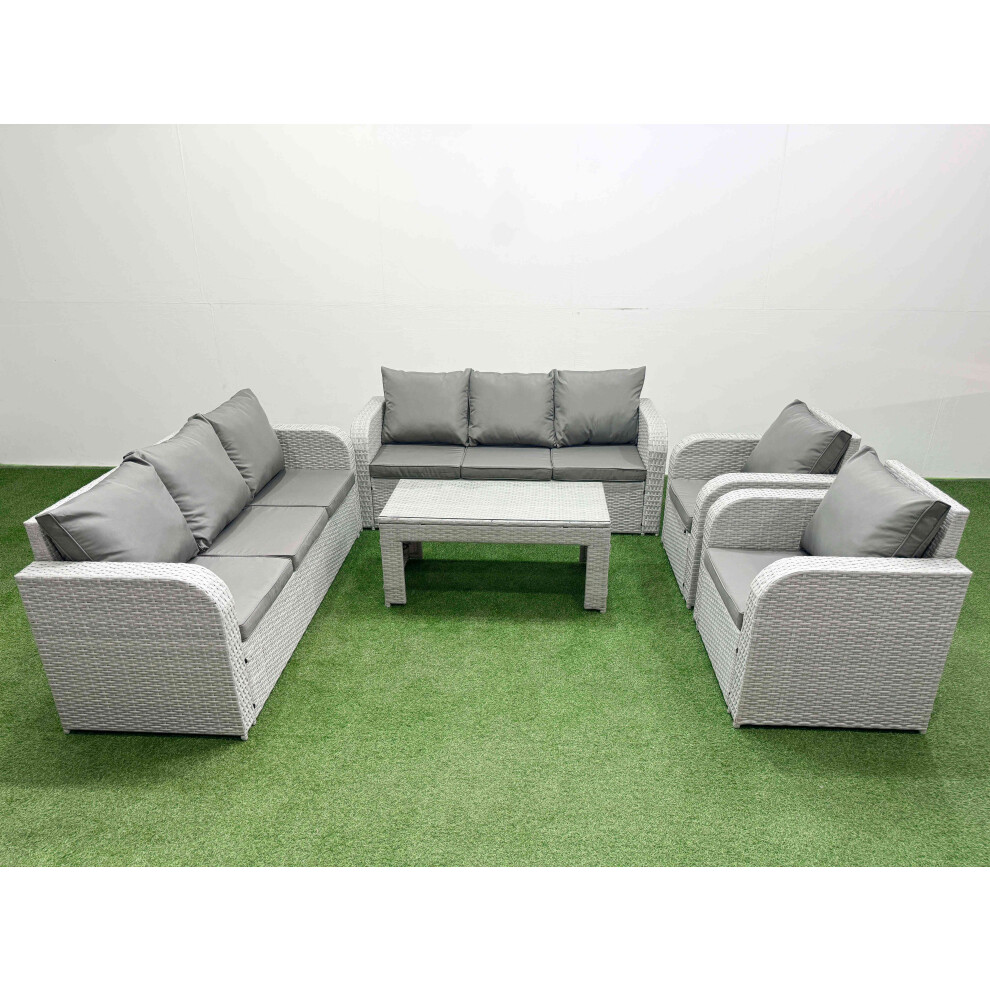 Fimous Rattan Garden Furniture Set 7 Pieces Outdoor Garden Sofa Oblong Coffee Table Set with 2 Chairs Light Grey Mixed