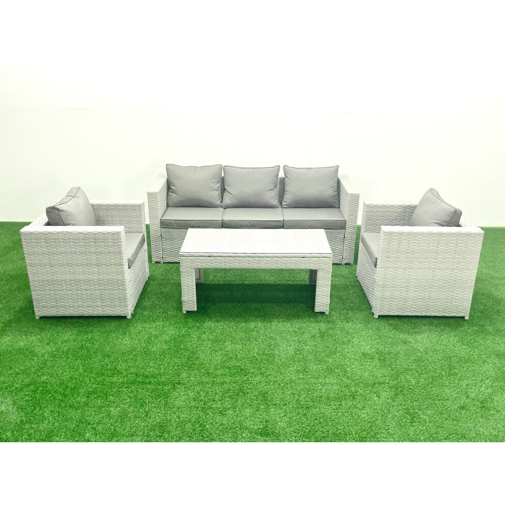 Fimous Rattan Garden Furniture Set 4 Pieces Outdoor Garden Sofa Oblong Coffee Table Set with 2 Chairs Light Grey Mixed
