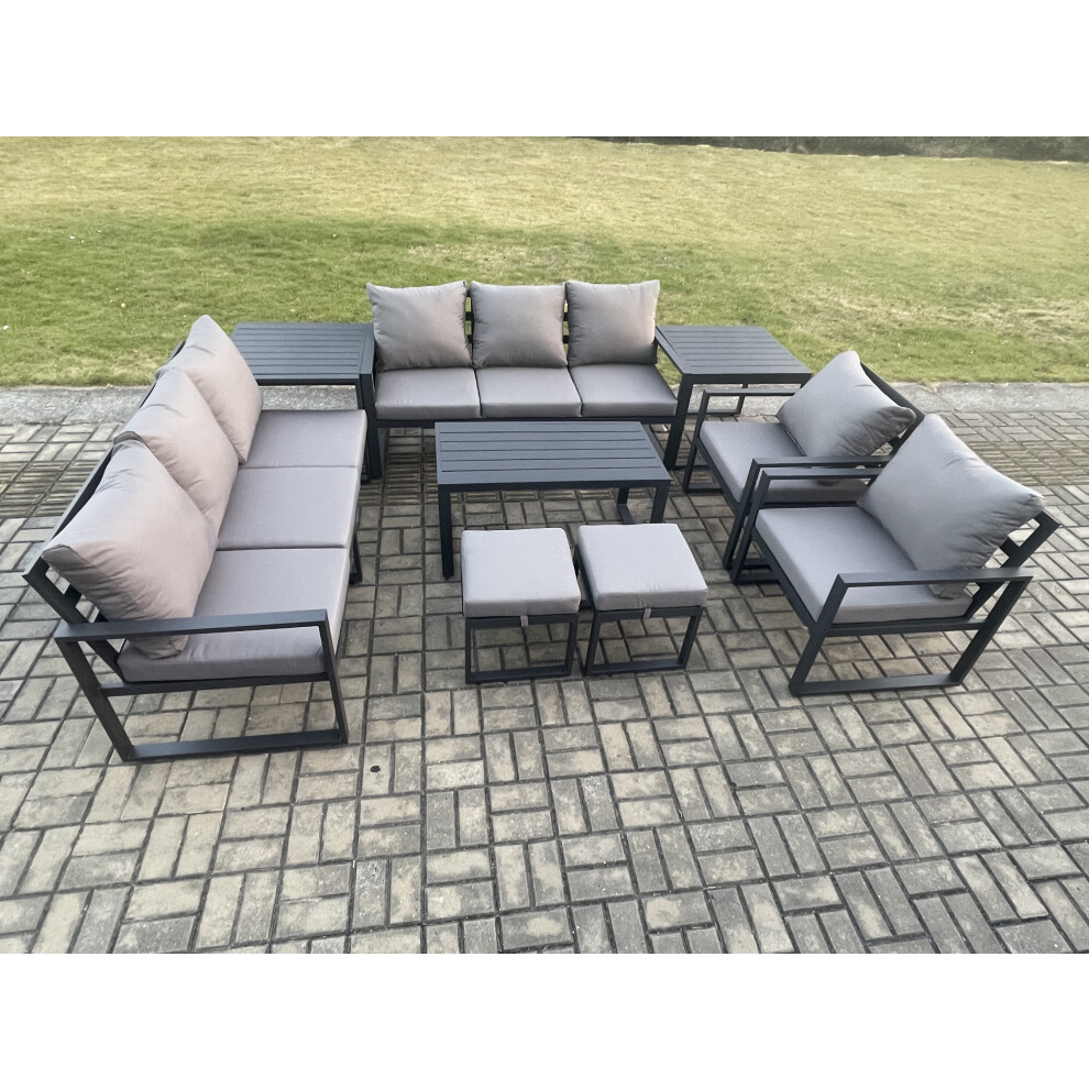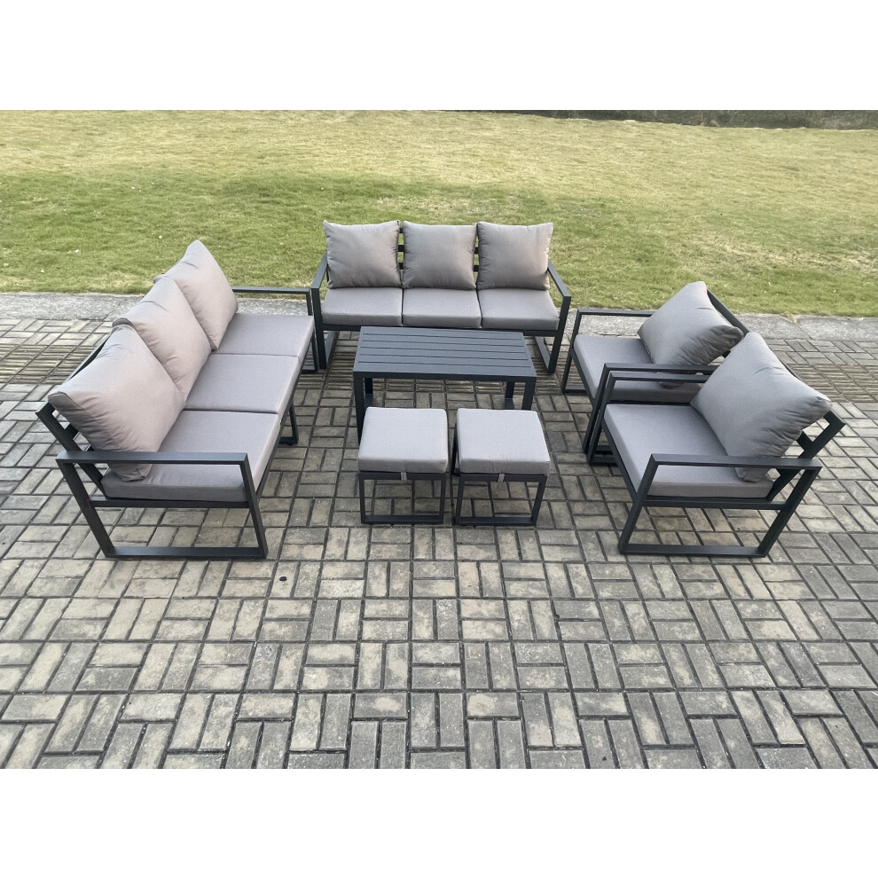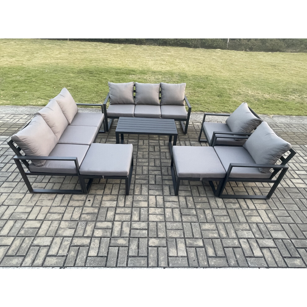 Fimous Aluminium Outdoor Garden Furniture Lounge Sofa 2 PC Chairs Oblong Coffee Table Sets with 3 Footstools Dark Grey
