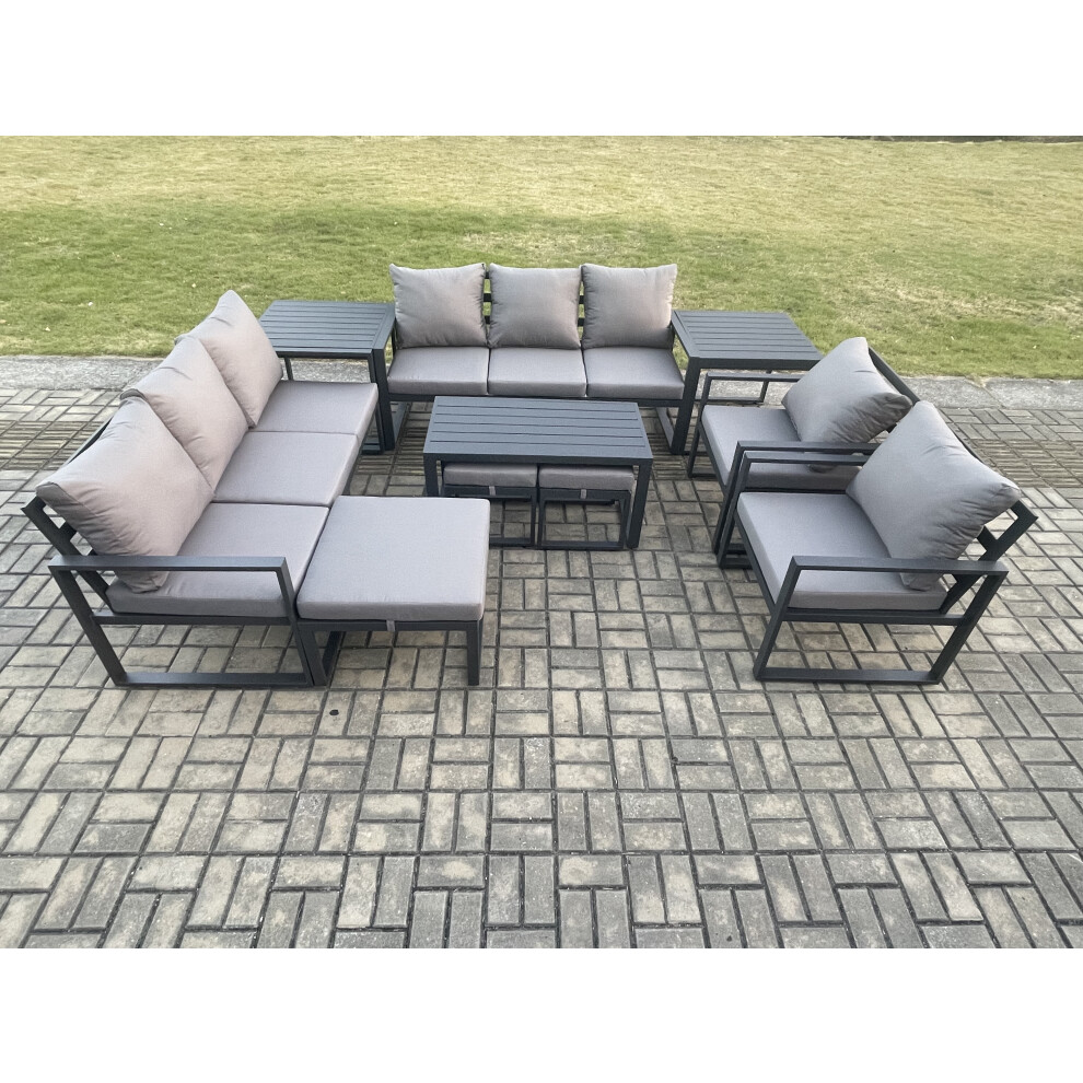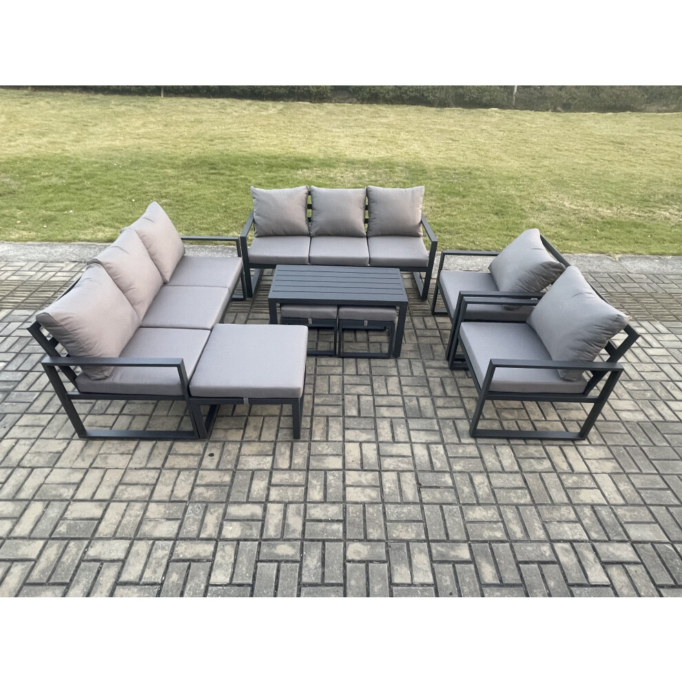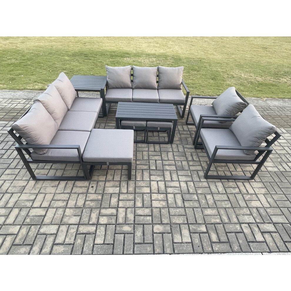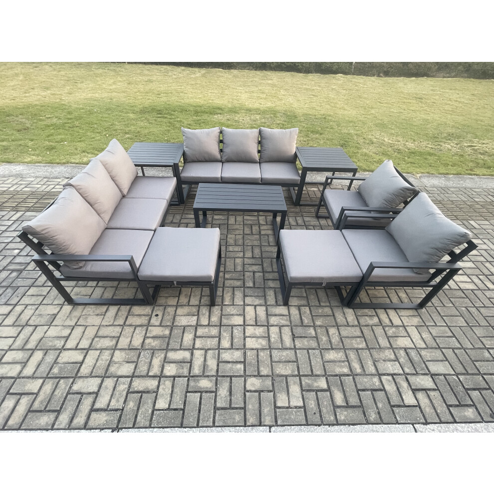 Fimous Aluminium Outdoor Garden Furniture Lounge Sofa 2 PC Chairs Oblong Coffee Table Sets with 3 Footstools Dark Grey