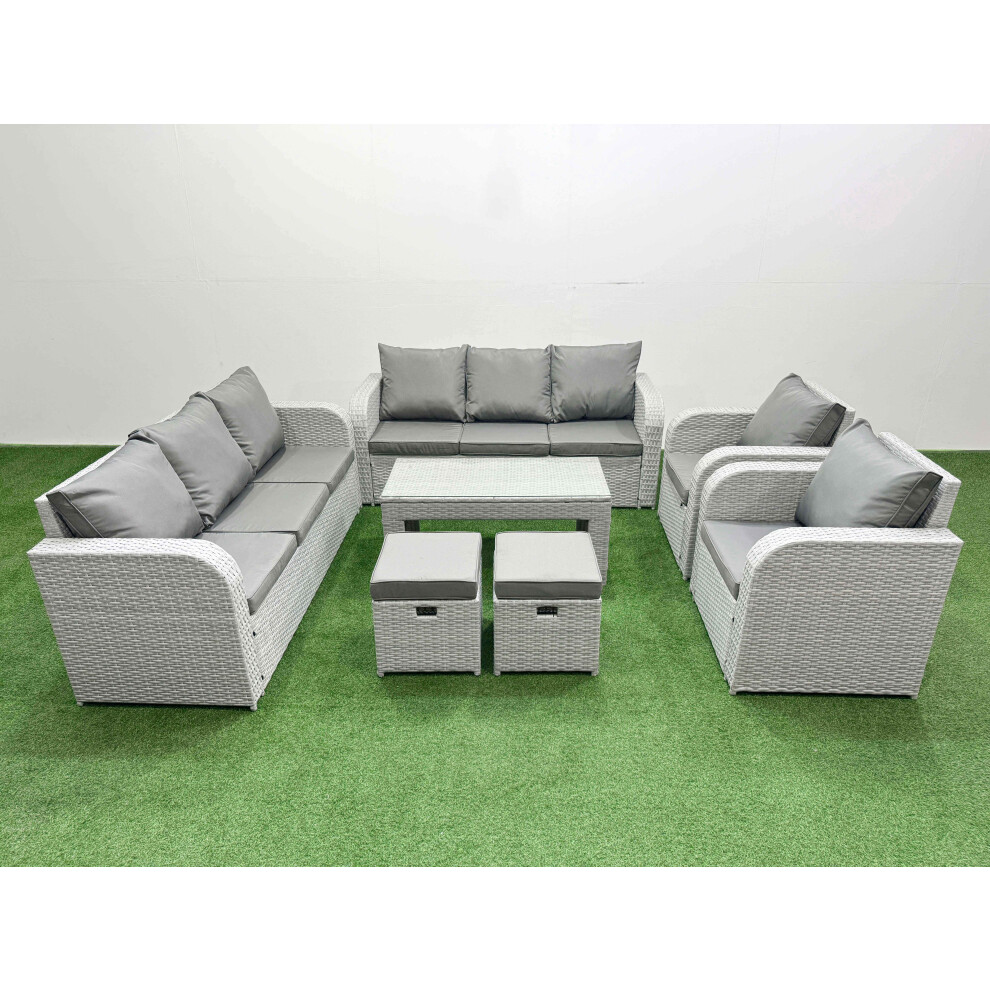 Fimous Rattan Garden Furniture Set 8 Seater Outdoor Garden Sofa Oblong Coffee Table Set with 2 Chairs 3 Stools Light Grey Mixed