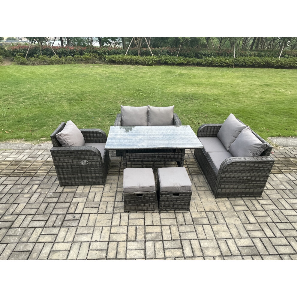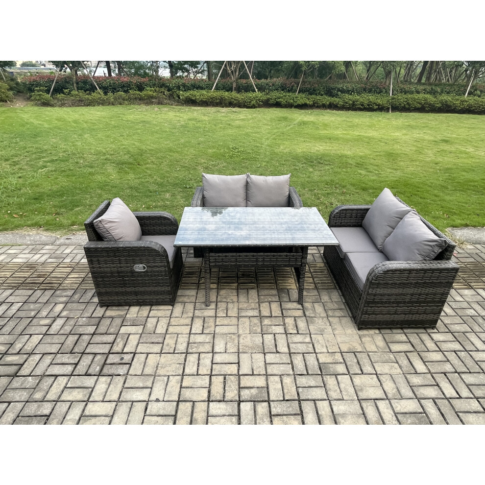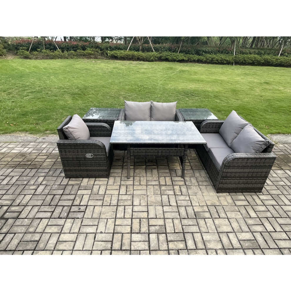 Fimous 6 Seater Lounge Rattan Sofa Set Outdoor Garden Furniture Oblong Rectangular Dining Table With Chairs Love Sofa Dark Grey Mixed