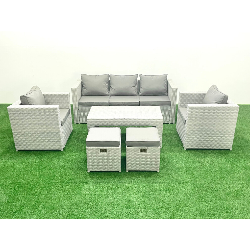 Fimous Rattan Garden Furniture Set 6 Pieces Outdoor Garden Sofa Oblong Coffee Table Set with 2 Chairs Side Tabe Stool Light Grey Mixed