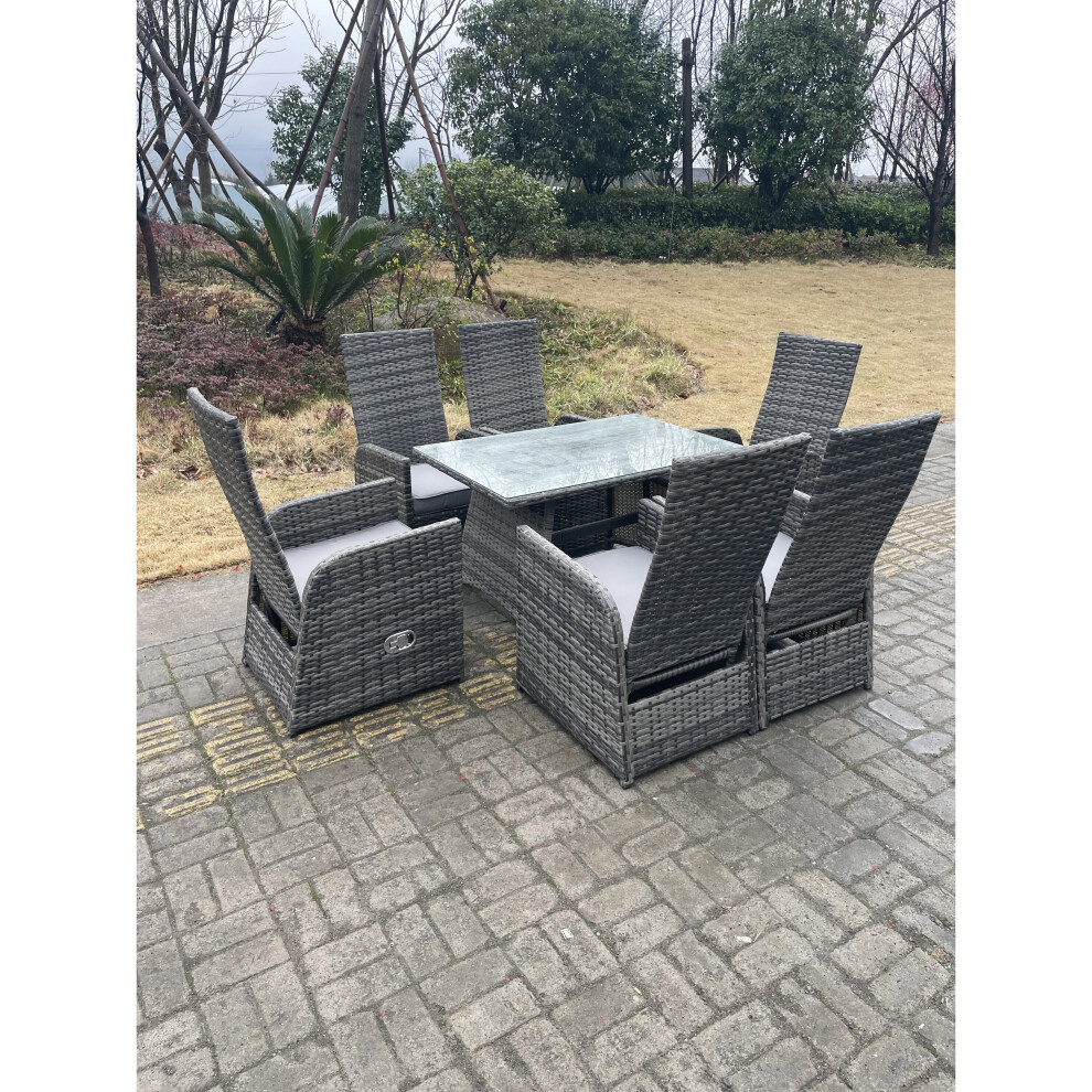 Fimous Oblong Rectangular Table Adjustable Reclining 6 Chairs Rattan Dining