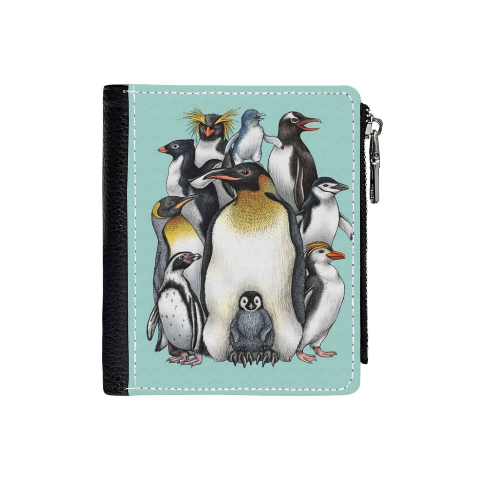 (Penguin Obsession_251) PU Wallet Compact Bifold with Zipper & Multiple Card Coins Slots Black Stylish Durable Graphic Design Print for Men Women Kids