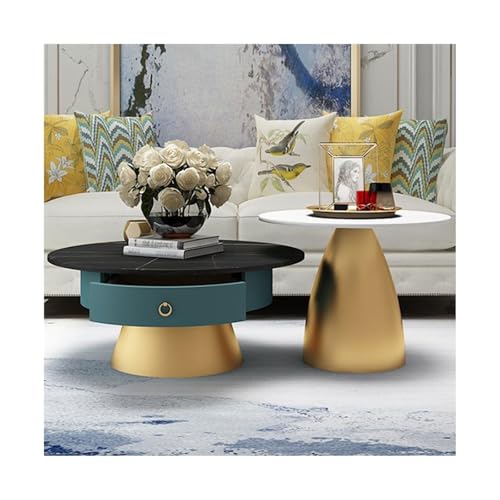 SONGYL-20249 Occasional Table Nesting Coffee Tables Set of 2, Round Table for Living Room, Side End for Small Spaces(Gold)