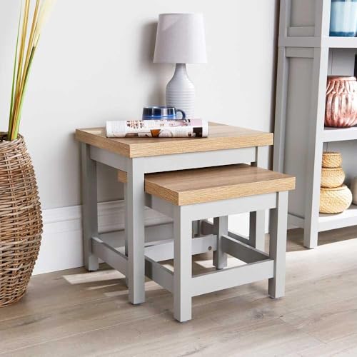Home Source Nest of 2 Occasional Side End Tables, Stackable, Oak Effect, Grey
