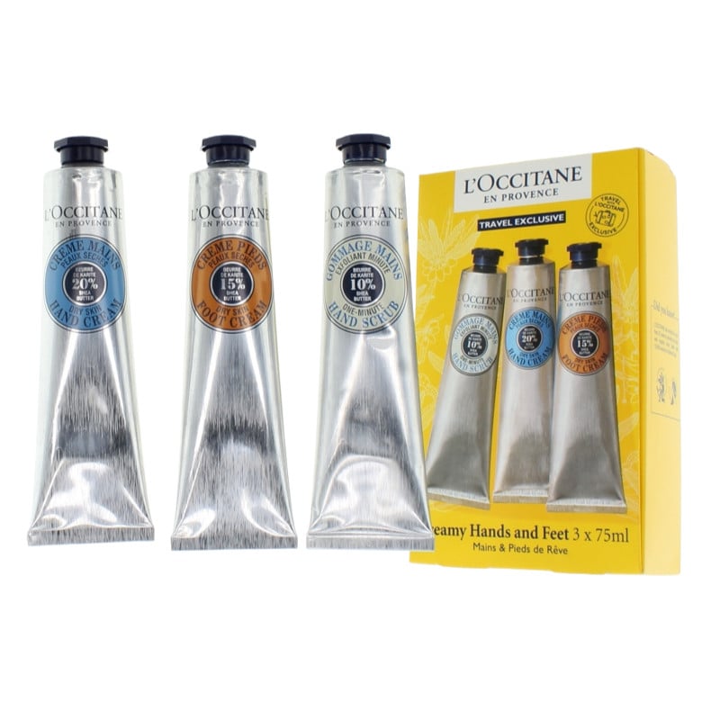 L'Occitane Hand Cream Foot Cream Set With Hand Scrub Exfoliator 3 x 75ml