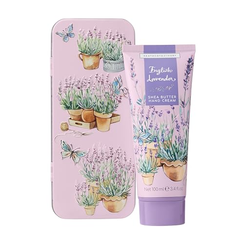 Heathcote & Ivory Hand Cream 100ml in Tin With Free Tester, Lavender Scented Moisturiser, Shea Butter, Argan Oil, Travel Size, Vegan and Cruelty Friendly, Beauty Gift For Her