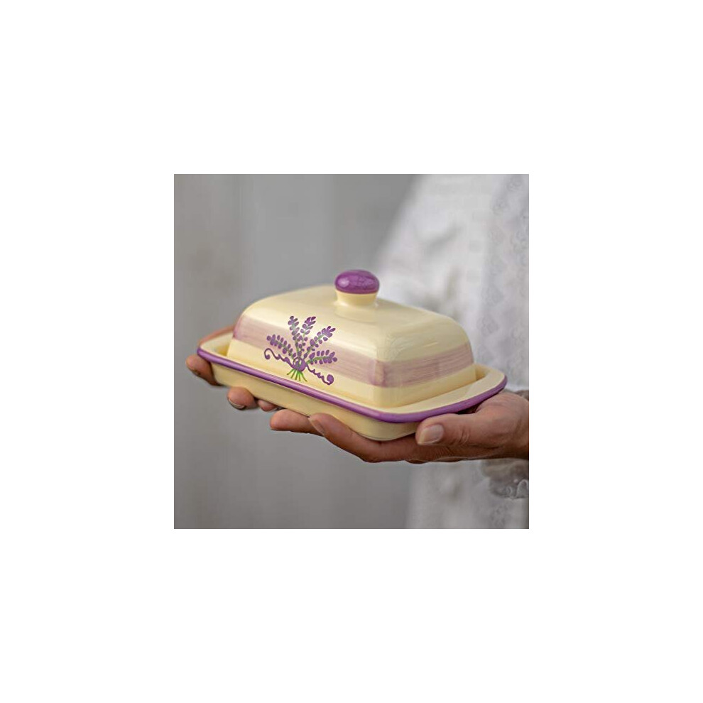 City to Cottage Lavender Pattern Purple and Cream Handmade Hand Painted Ceramic Covered Butter Dish with Lid