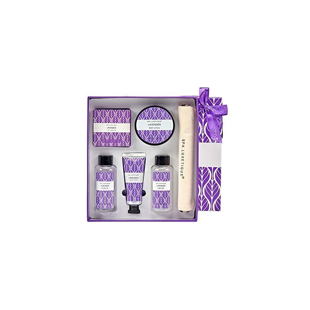 Spa Luxetique Spa Gift Set, Lavender Bath Gift Set, Pamper Gift Box for Women, Home Bath Set with Hand Cream, Body Lotion, Bubble Bath, Shower Gel,