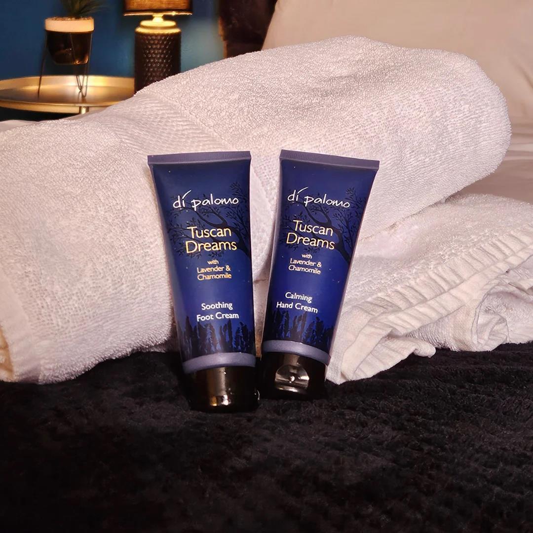 Di Palomo Vegan Tuscan Dreams Moisturising Sleep Duo. Calming Hand Cream & Soothing Foot Cream for Women. Moisturising Skin Care. Lavender & Chamomile for Anxiety Relief & Sleep Aid. Vegan Gift Set.