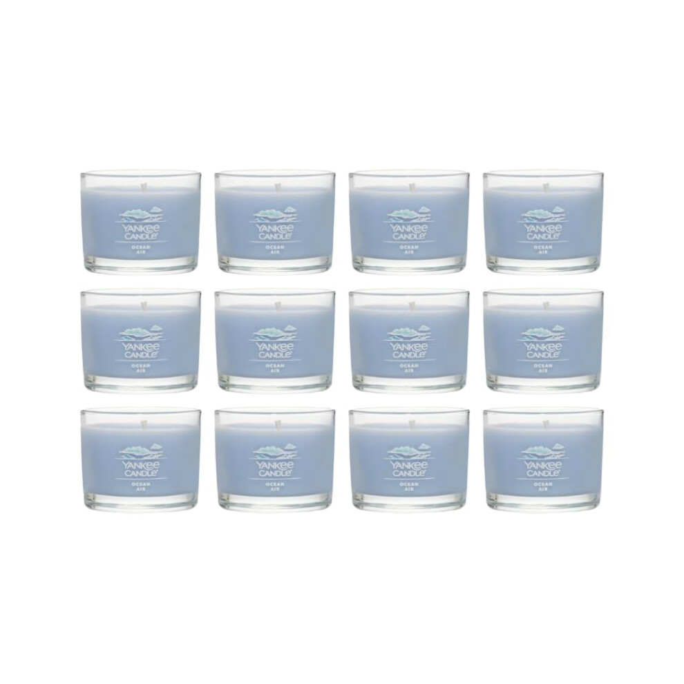 Yankee Candle Signature Votive Mini Candle Jar Ocean Air Scent Natural Soy Wax Blend Candle with Natural Fiber Wick 1.3 OZ Glass Jar (Pack of 12)