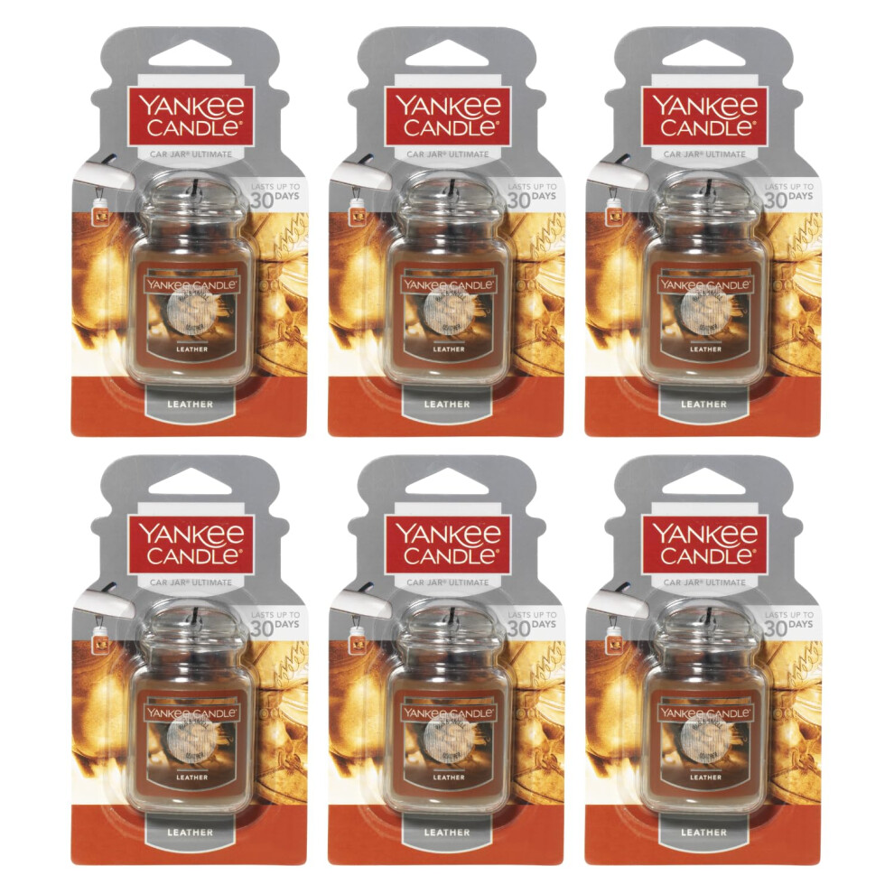 Yankee Candle Car Air Fresheners Hanging Car Jar Ultimate Leather Scented Neutralizes Odors Up To 30 Days Brown 1 Count (Pack of 1)