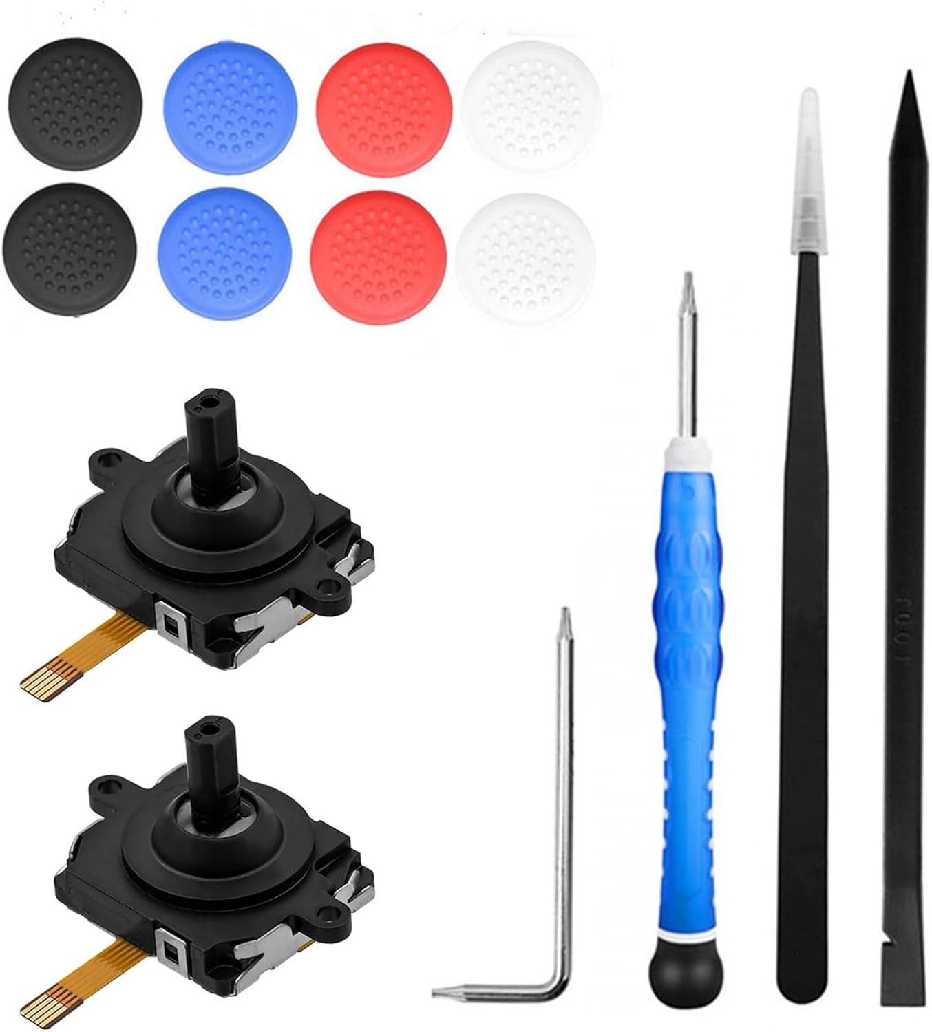 TUAKIMCE 2 Pcs Joystick Replacement Kit for Oculus/Meta Quest 2 Controller, Left & Right Joystick Analog Set with Joystick Caps for VR Controller,Repair Tool Set for VR Controller