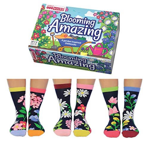 United Oddsocks Blooming Amazing Gift Box – 6 Garden-Inspired Odd Socks for Women – UK 4-8 EUR 37-42 US 6.5-10.5 – Colourful Floral Novelty Socks, Fun Present for Gardeners, Mother's Day Gift Idea