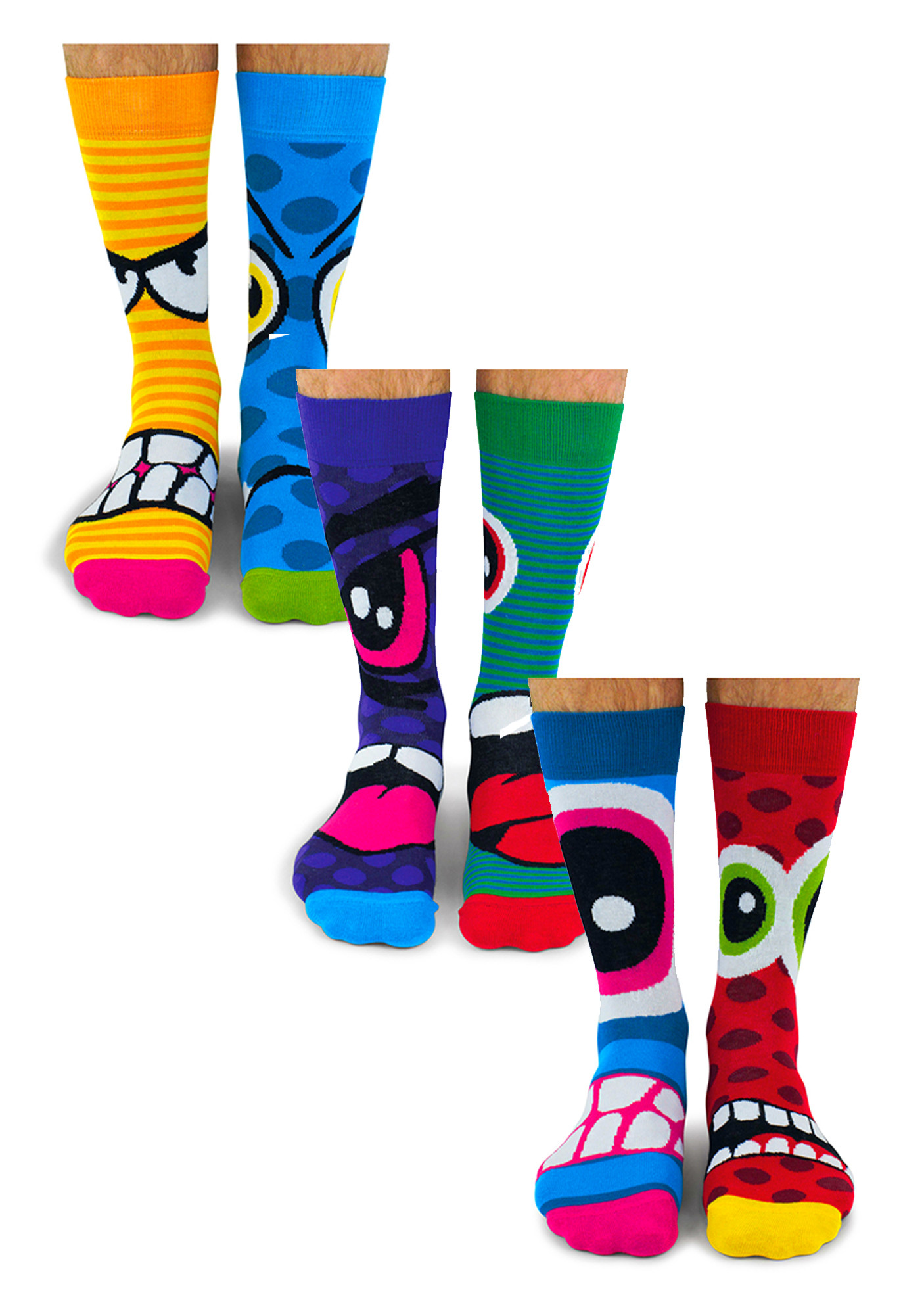 United Oddsocks The Stress Heads Gift Box – 6 Sulking Odd Socks for Men – UK 6–11, EUR 39–46, US 7–12 – Funny Monster-Themed Mix & Match Socks – Colourful Gift for Birthdays, Father’s Day & Christmas
