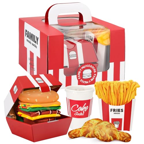 Funny Family Meals Socks Box for Dad Father Men Women Teenage Boys - Fun Gifts Novelty Funky Burger Food Cool Crazy Silly Odd Socks Fathers Day Easter Birthday Gifts Christmas Stocking Fillers