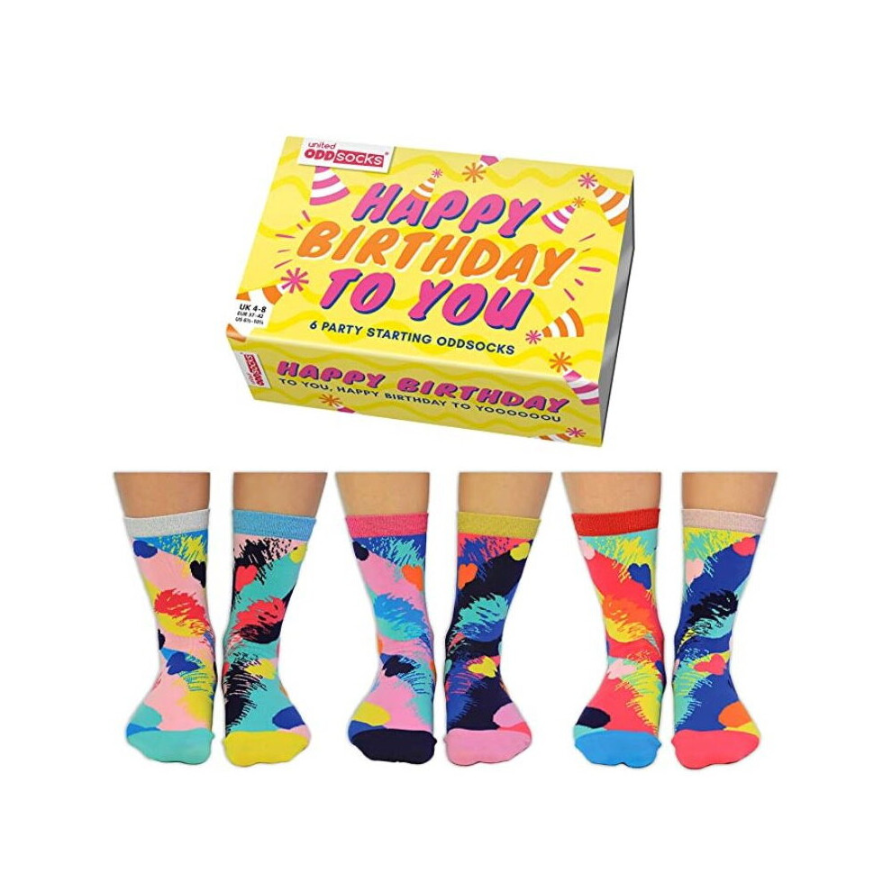 United Oddsocks Box Of 6 Ladies Odd Socks Happy Birthday To You UK 4-8
