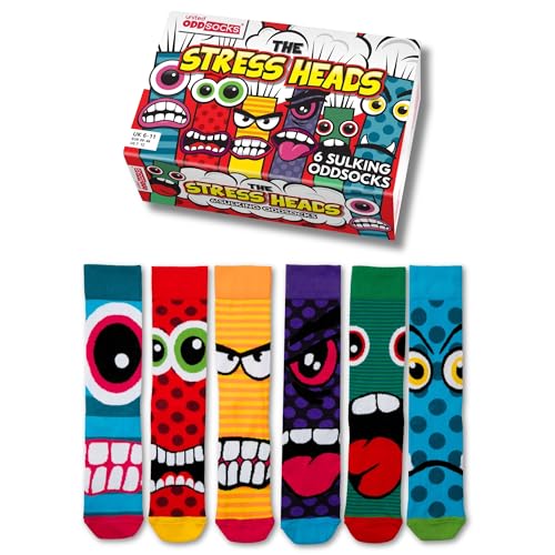 United Oddsocks The Stress Heads Gift Box – 6 Sulking Odd Socks for Men – U