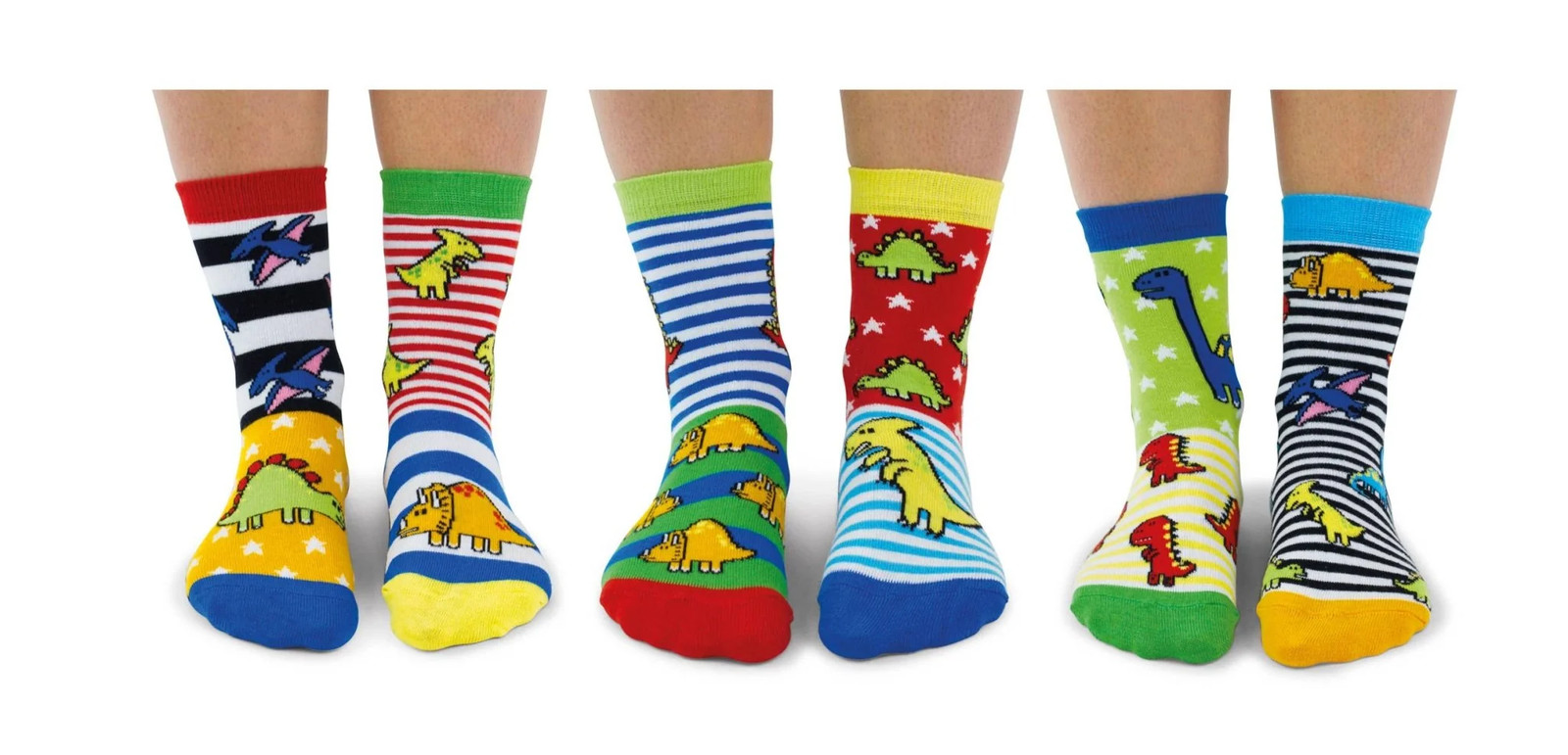 Sock Academy - SOCKASAURUS 6 Odd Socks Gift Box - United Oddsocks - UK 9-12 EUR