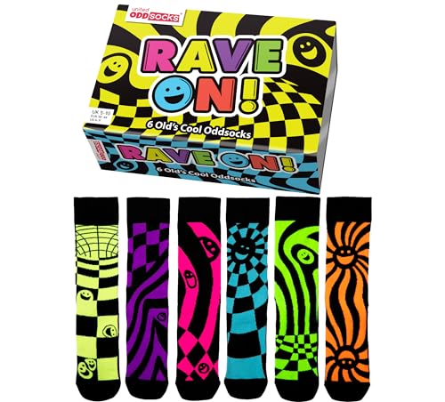 United Oddsocks RAVE ON 6 Odd socks gift box | UNISEX UK 5-10 | EUR 38-44 | US 6-11