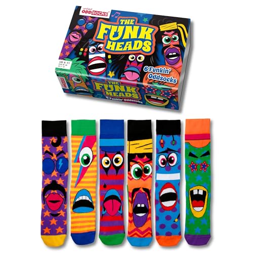 United Oddsocks The Funk Heads Gift Box – 6 Colourful Funky Odd Socks for Men – UK 6–11, EUR 39–46, US 7–12, Mix & Match 70s-Inspired Novelty Socks, Fun Birthday, Christmas or Father’s Day Gift & More