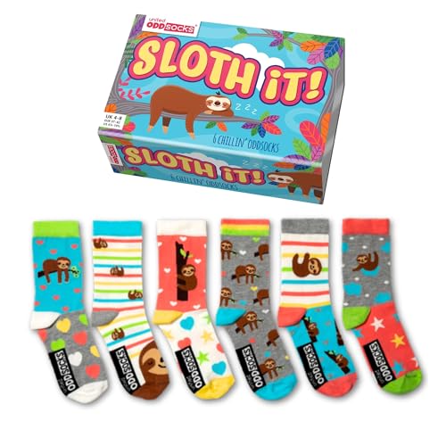 United Oddsocks Sloth It Ladies Gift Box – 6 Colourful Odd Socks for Women – UK 4-8, EUR 37-42, US 6.5-10.5 – Relaxing Sloth-Themed Socks for Mixing and Matching – Cute, Quirky Gift for Her