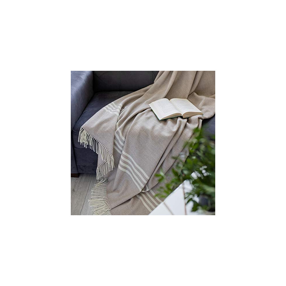 Linen & Cotton Extra Soft Light Throw/Blanket Brooklyn - 100% Fine Merino Wool, Brown/Natural (140 x 200cm) Warm Plaid for Sofa Bed Couch Settee