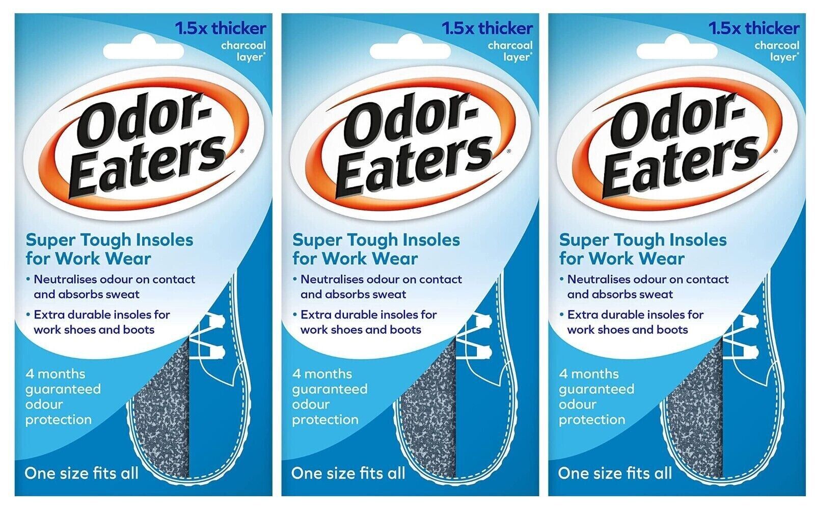 3x Odor Eaters Super Tuff Heavy Duty Work Wear Tough Insoles