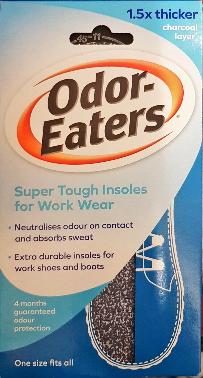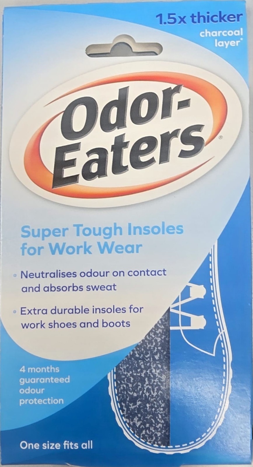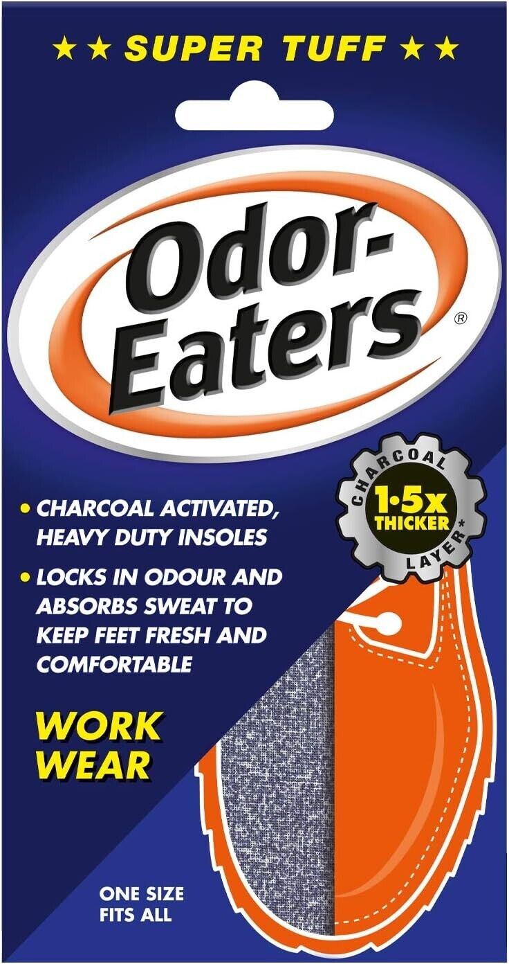 Odor Eaters Super Tuff Shoe Odour Washable Work Wear Insoles Charcoal Layer