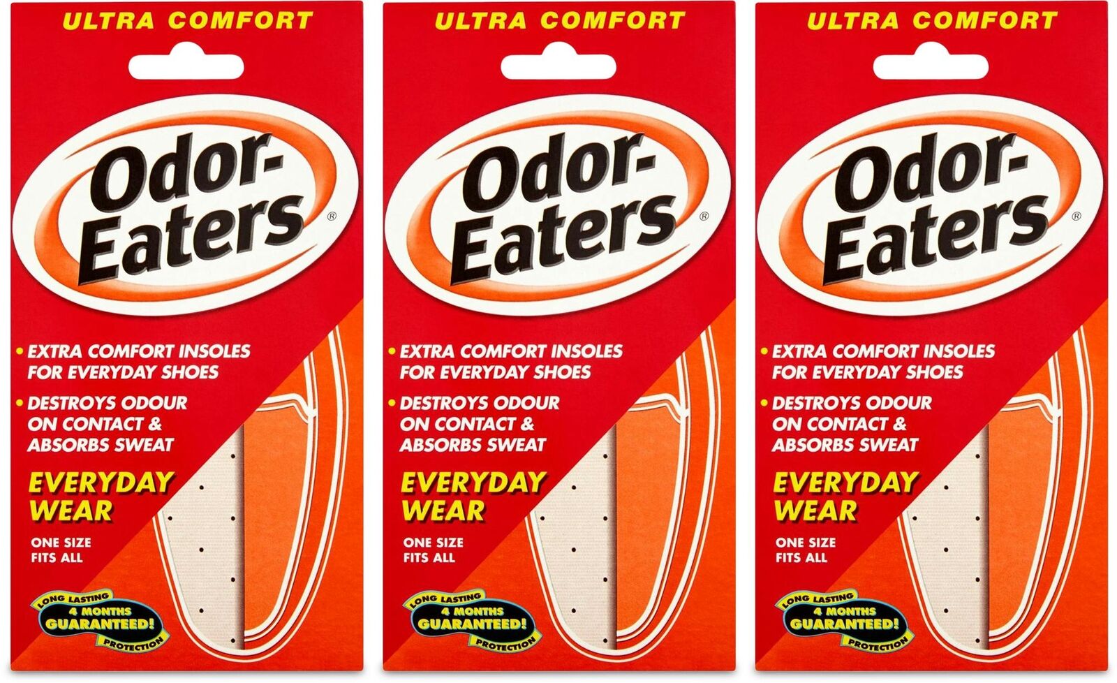 3x Odor Eaters Ultra Comfort Deodorising Insoles For Everyday Wear