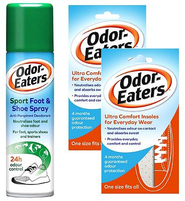 Odor-Eaters Trainer Tamers Insoles x 2 Plus Sport Foot & Shoe Spray 150 ml Bund