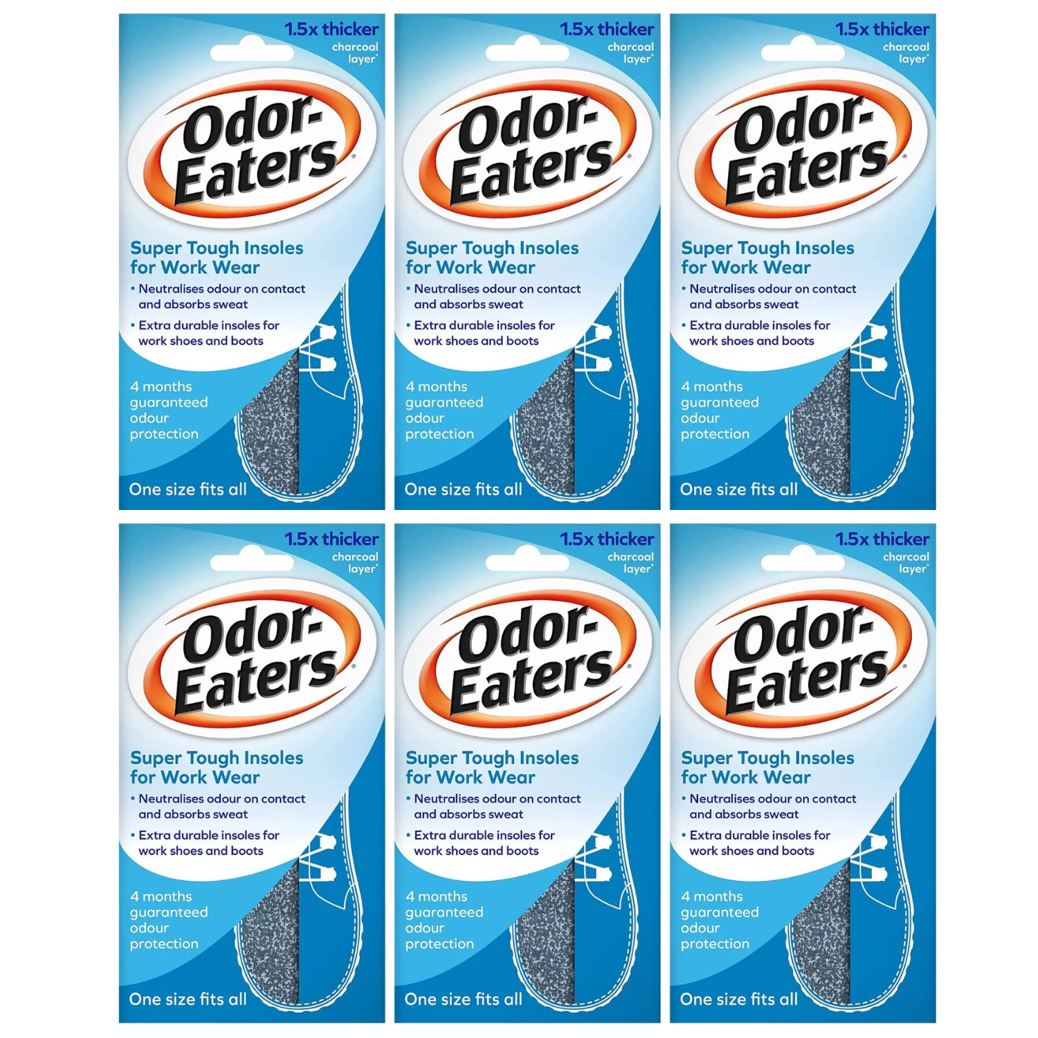 Odor-Eaters Supertuff, Odour-Destroying, Heavy Duty Insoles, for Work wear, Pack of 6