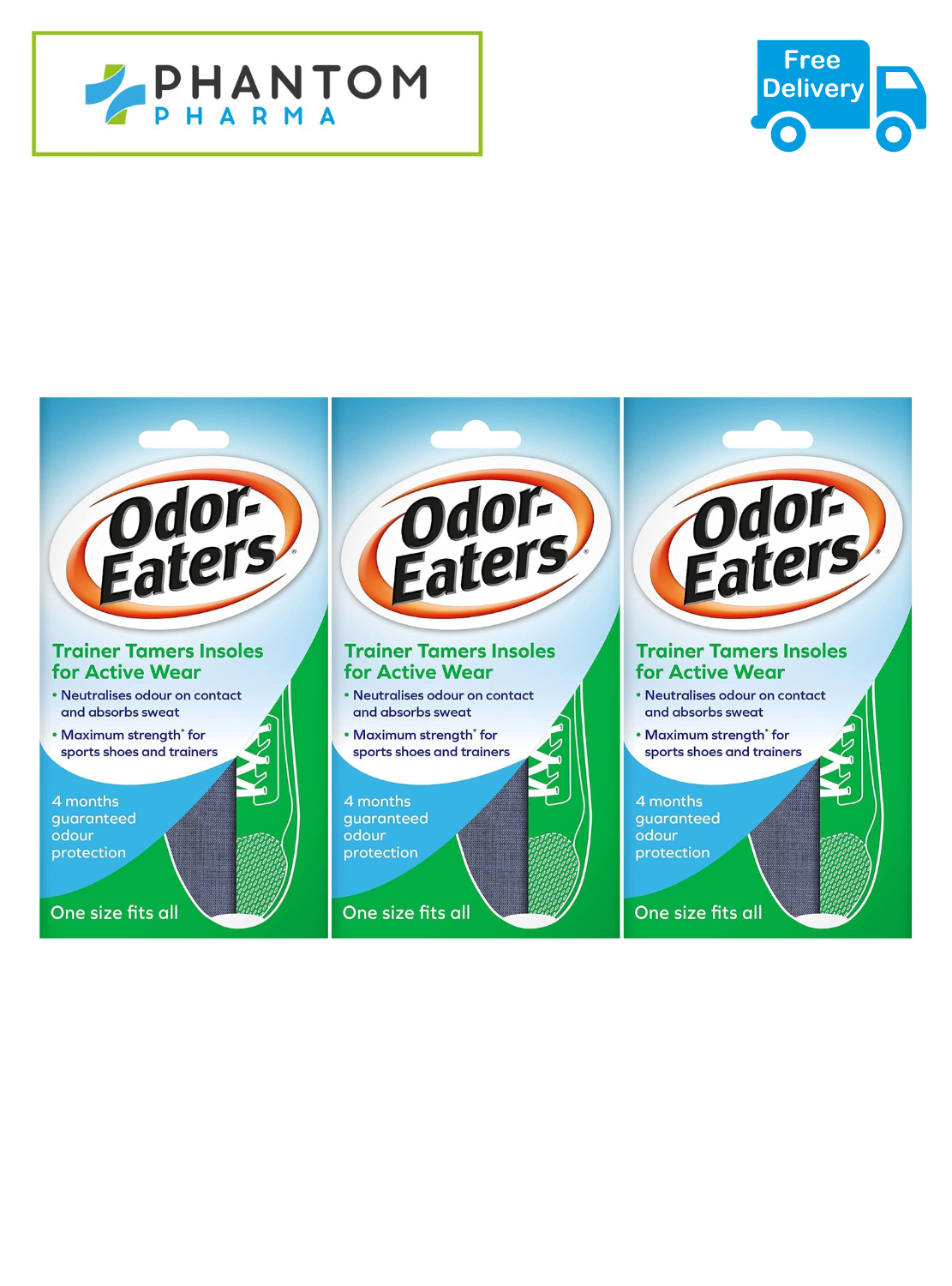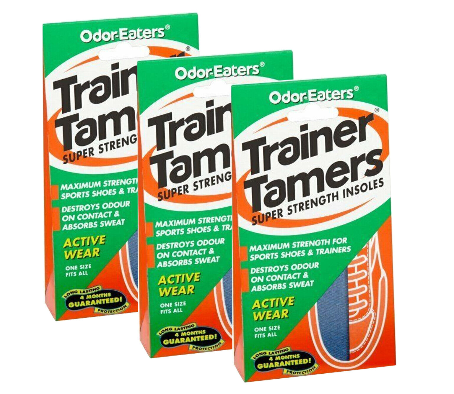 3 x Odor-Eaters Trainer Tamers, Odour-destroying, Super Strength Insoles,