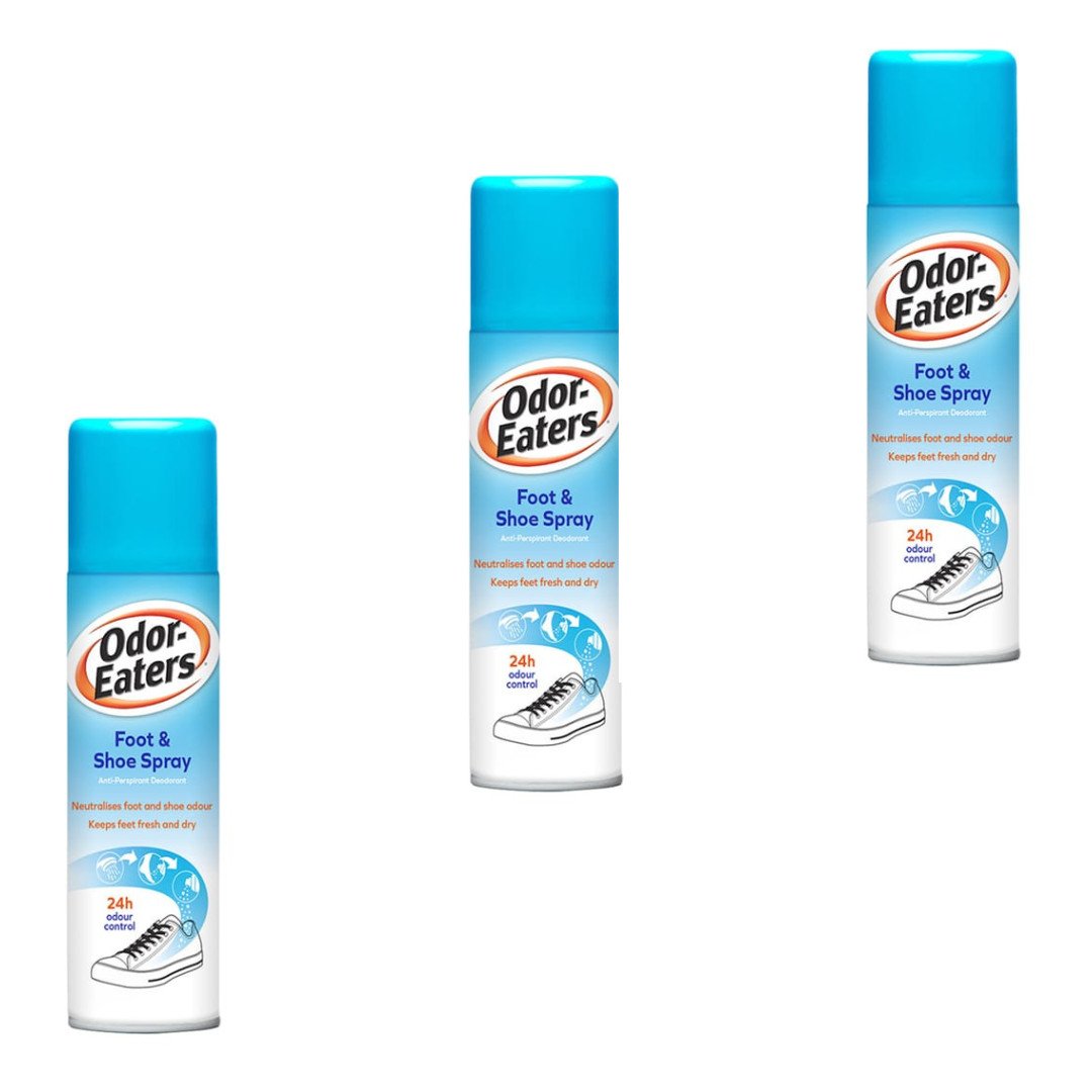 3x Odor Eaters Foot & Shoe Anti Perspirant Odour Free Deodorant Spray 150ml