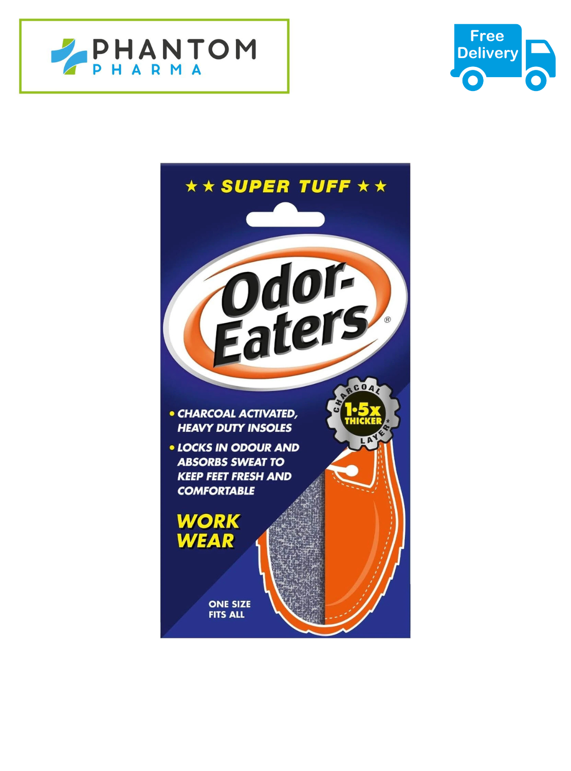 Odor Eaters Super Tuff Shoe Odour Washable Work Wear Insoles - 1 Pair