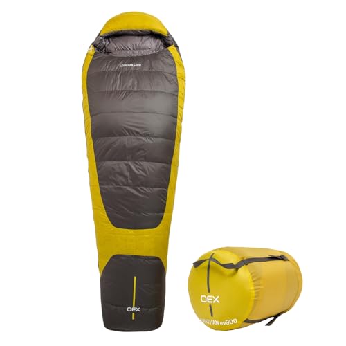 OEX Leviathan EV 900 Down Sleeping Bag for Adults & Teens, 1 Person, 4+ Season, Lightweight & Water Resistant Mummy, Ideal for Cold Weather Camping, Hiking & Backpacking, Compression Bag, Grey