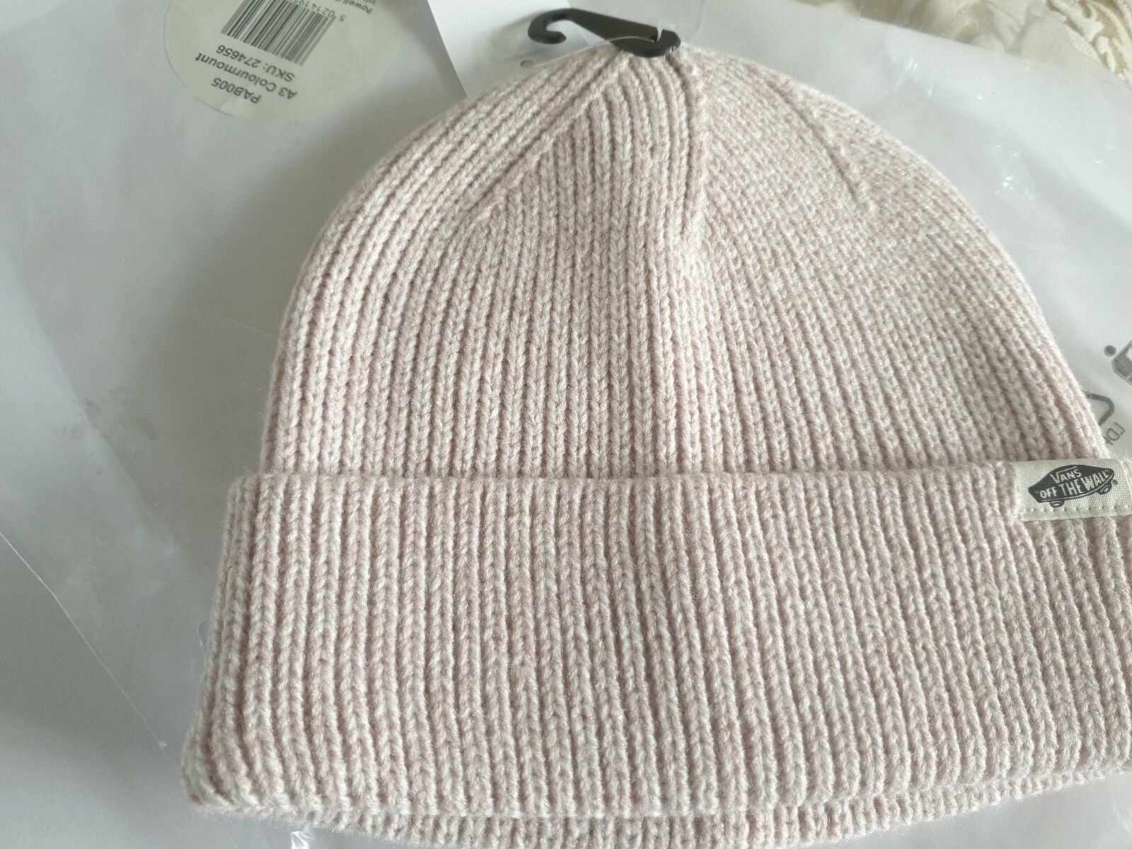 VANS OFF THE WALL BEANIE TWILLY HAT PINK AND WHITE MIX NEW WITH TAGS