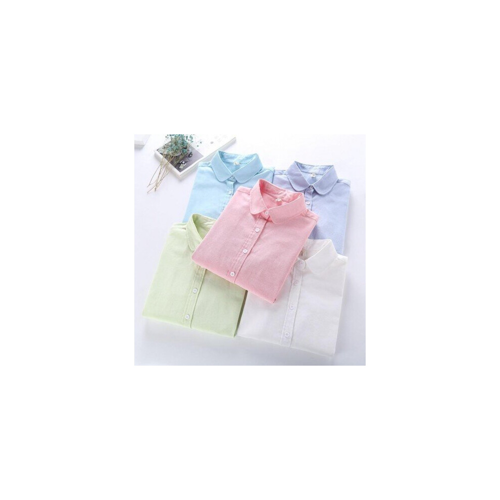 (S, White) Women Blouse 2019 New Casual BRAND Long Sleeve Oxford White Blue Shirt Woman Office Wear Shirts High Quality Blusas Ladies Tops