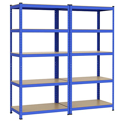 Yaheetech 5-Tier Garage Shelves 2PCS Standing Racking Shelving Units, Heavy Duty Adjustable Garage Shelving Unit for Workshop/Shed/Office, 180cm x90cm x 45cm, 265kg Per Shelf, Blue