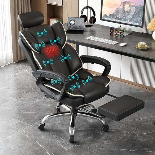 Massage Office Chair with Heat and 6 Vibration Points, Big and Tall Ergonomic Reclining Executive Desk Chair with Footrest, Comfortable Leather, Supports up to 400 lbs