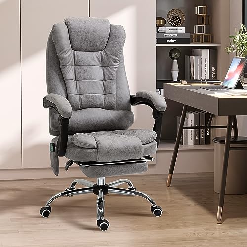 HOMCOM Executive Office Chair with 8-point Massage and Heat, Height Adjustable, Swivel Wheels, Footrest and Remote Grey, none