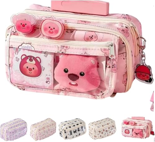 Kawaii Pencil Case, Cute Pen Holder Pouch Aesthetic Cartoon Large Capacity Japanese Stationery Organizer Bag School Supplies Office Desk Accessories (Pink)