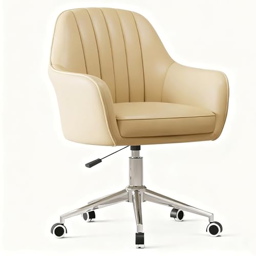 Office Desk and Chair Set, Modern Height-Adjustable 360-Degree Swivel Upholstered Vanity Chair, Suitable for Living Room/Bedroom/Study(Yellow)