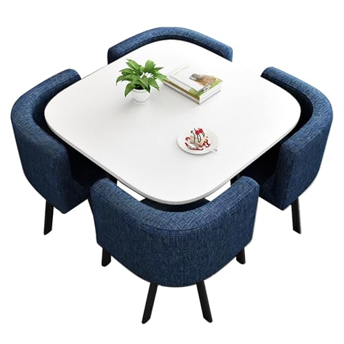 Small Conference Table, Reception Negotiation Table, Office Desk and Chair Set of 5, Dining Room Desk, for Bar Balcony Bedroom Library Billiard Hall(Blue,90cm/35.5in)