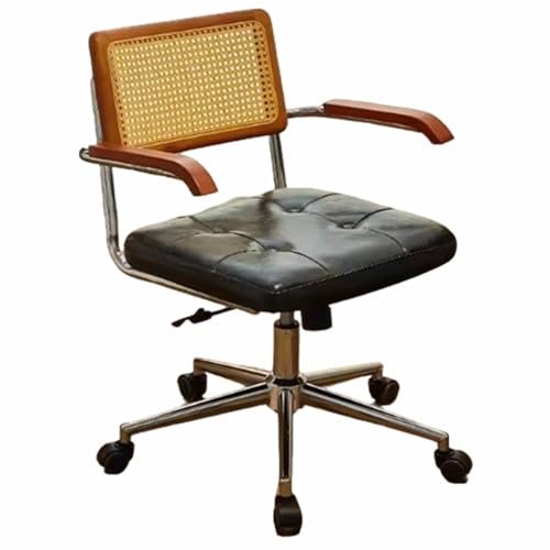 Home Office Desk and Chair Set, 360° Swivel Computer Chair with Wheels and Armrests, Soft-Padded Comfortable Height-Adjustable Casters Chair(Black,Black Legs)
