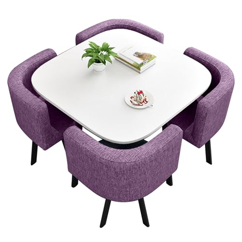 Square Modern Dining Table Set, Office Reception Negotiation Desk and Chair Set, Business Conference Room Coffee Table, for Balcony Library Lounge Coffee Shop, 31.5" L(Purple)