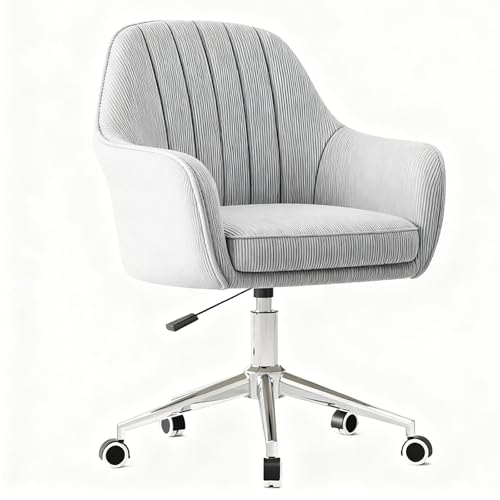 Office Desk and Chair Set, Modern Height-Adjustable 360-Degree Swivel Upholstered Vanity Chair, Suitable for Living Room/Bedroom/Study(Gray)