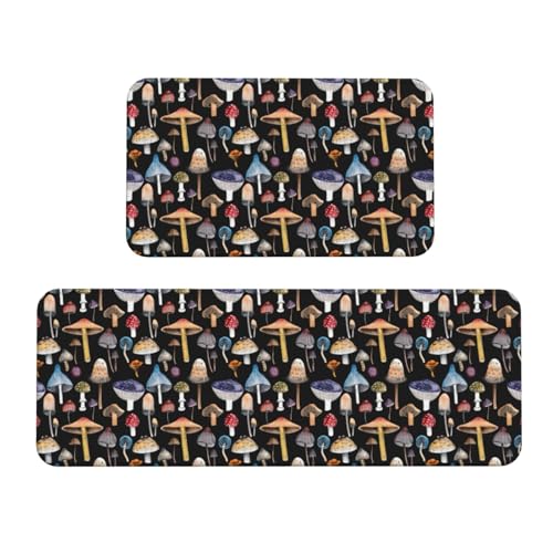 Xiso Ver Mushrooms and Autumn Leaves Kitchen Mat 2PCS Kitchen Rugs, Cushioned Anti Fatigue Non Skid Waterproof Floor Mats for Home,Office,Sink,Laundry,Desk